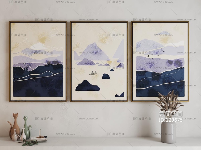新中式装饰画3d模型下载