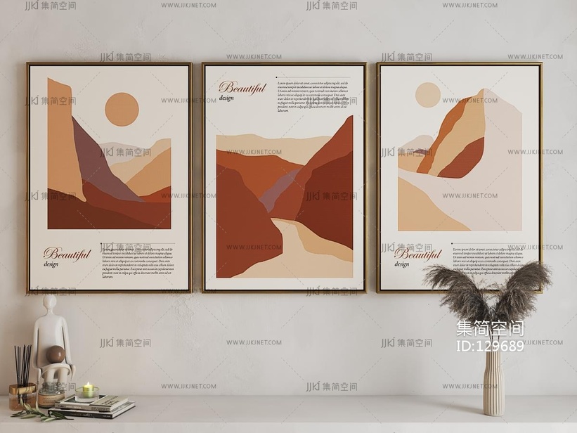 中古风抽象装饰画3d模型下载