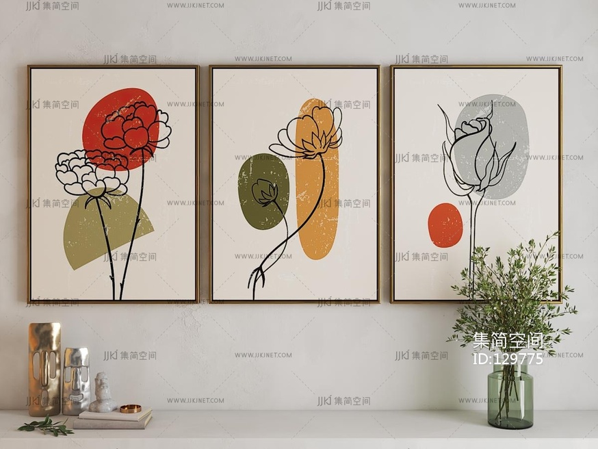 中古风抽象装饰画3d模型下载