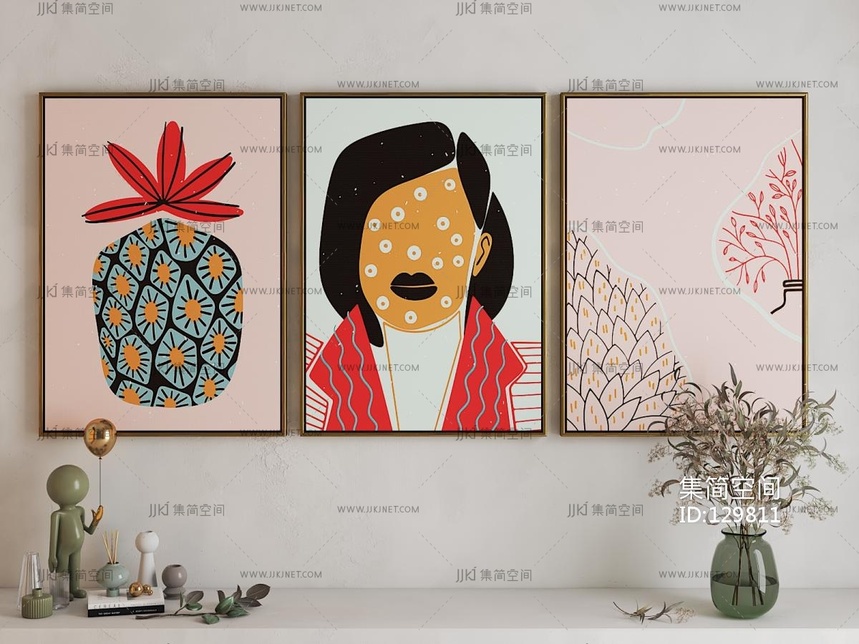 现代活力卡通海报挂画 3d模型下载 [模型ID:129811]