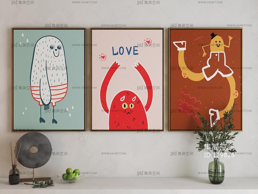 现代活力卡通海报挂画 3d模型下载 [模型ID:129826]