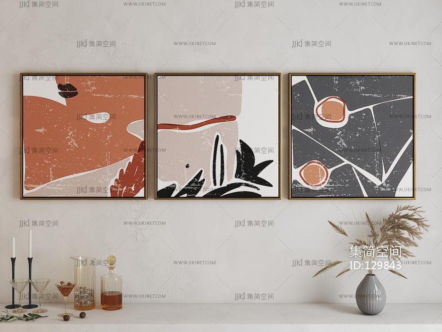 现代轻奢艺术挂画 3d模型下载 [模型ID:129843]
