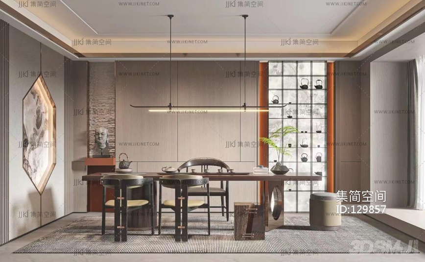 现代书房 书桌椅 壁柜 挂画 吊灯 书 盆栽 摆件3d模型下载