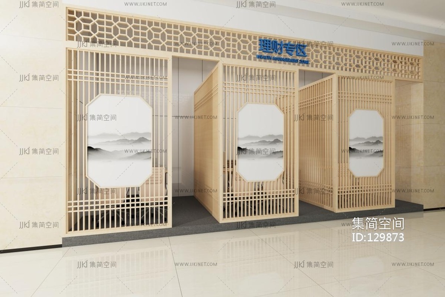 新中式屏风隔断 3d模型下载 [模型ID:129873]