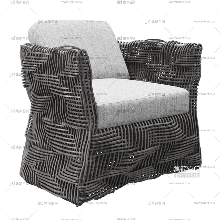 藤编单人沙发 3d模型下载 [模型ID:129902]