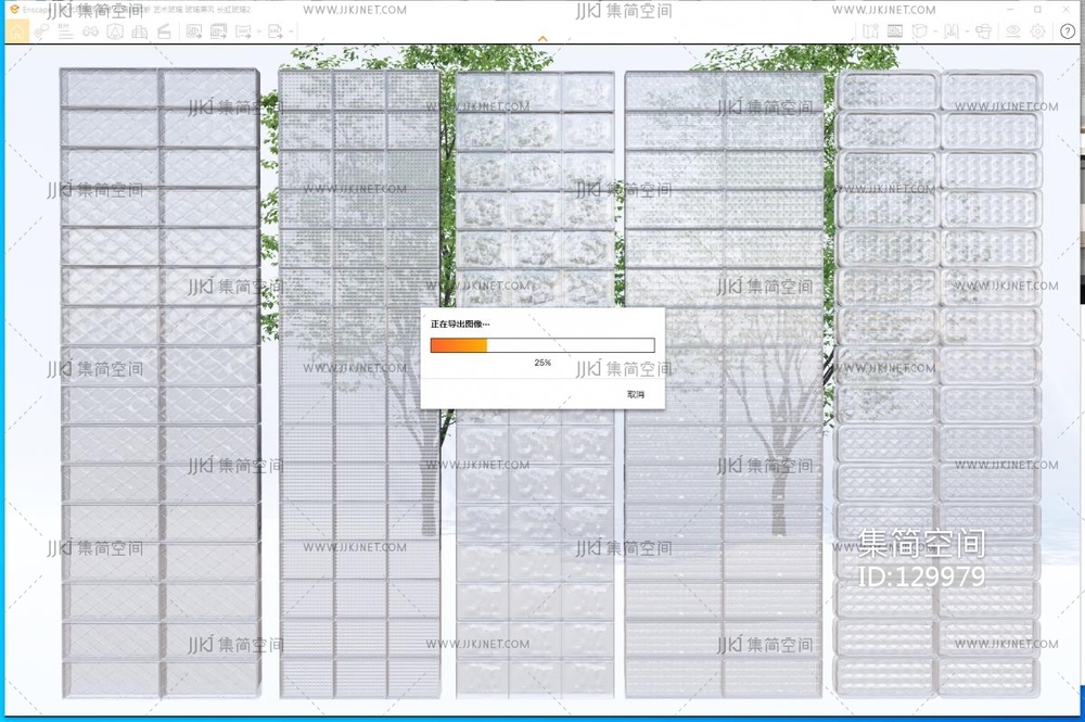 现代玻璃砖景墙 su草图模型下载 [模型ID:129979]