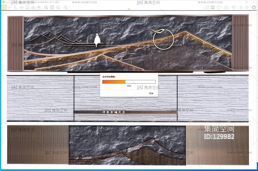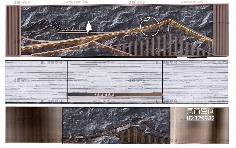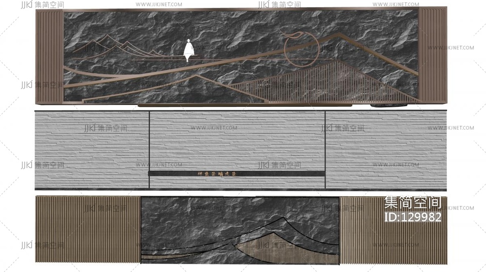新中式山水景墙围墙背景 su草图模型su草图模型下载