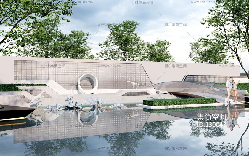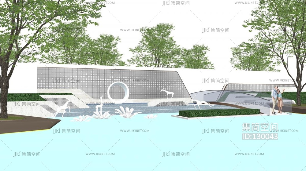 09新中式景墙 户外景墙 形象墙 艺术景墙 景观小品 文化墙20su模型 su草图模型下载 [模型ID:130043]