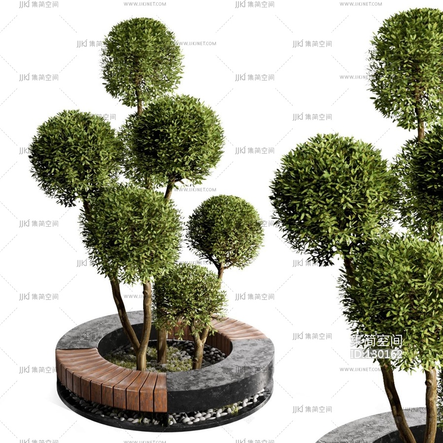 现代户外座椅景观树树池 3d模型下载 [模型ID:130162]