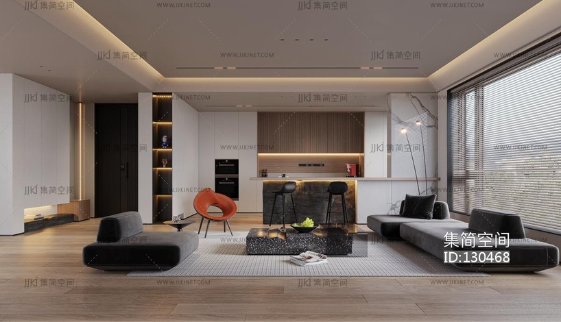 中古风客厅 沙发茶几组合 背景墙3d模型下载