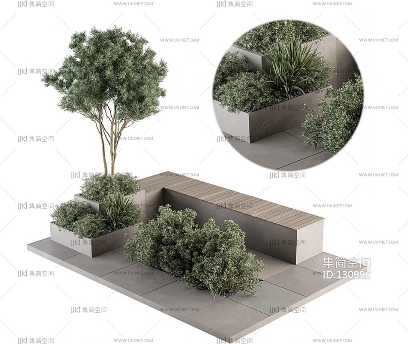 现代景观座椅绿植树花池花槽,灌木 3d模型下载 [模型ID:130996]