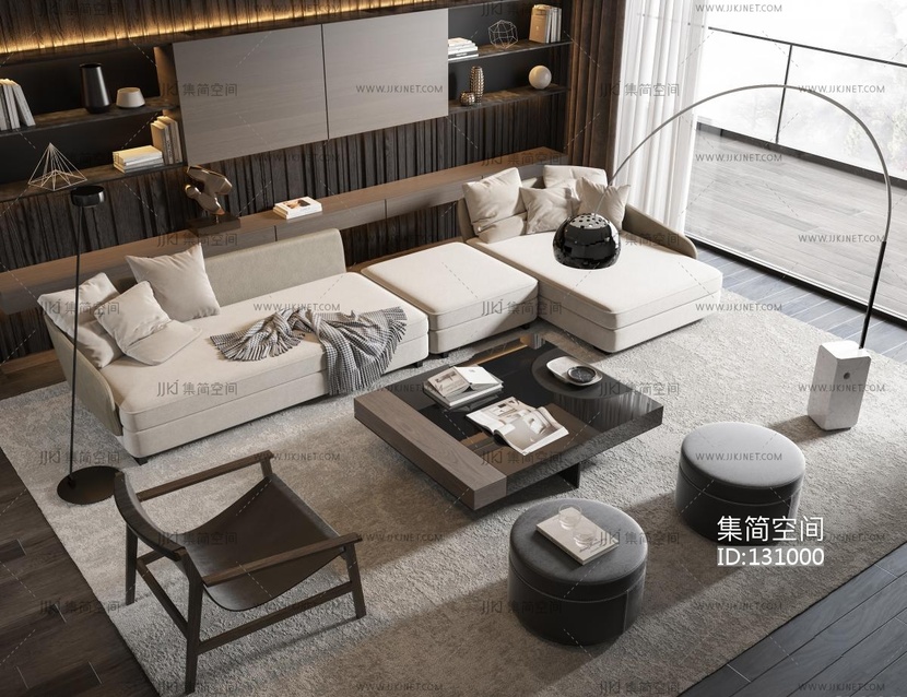 米洛提现代沙发茶几组合 3d模型下载 [模型ID:131000]