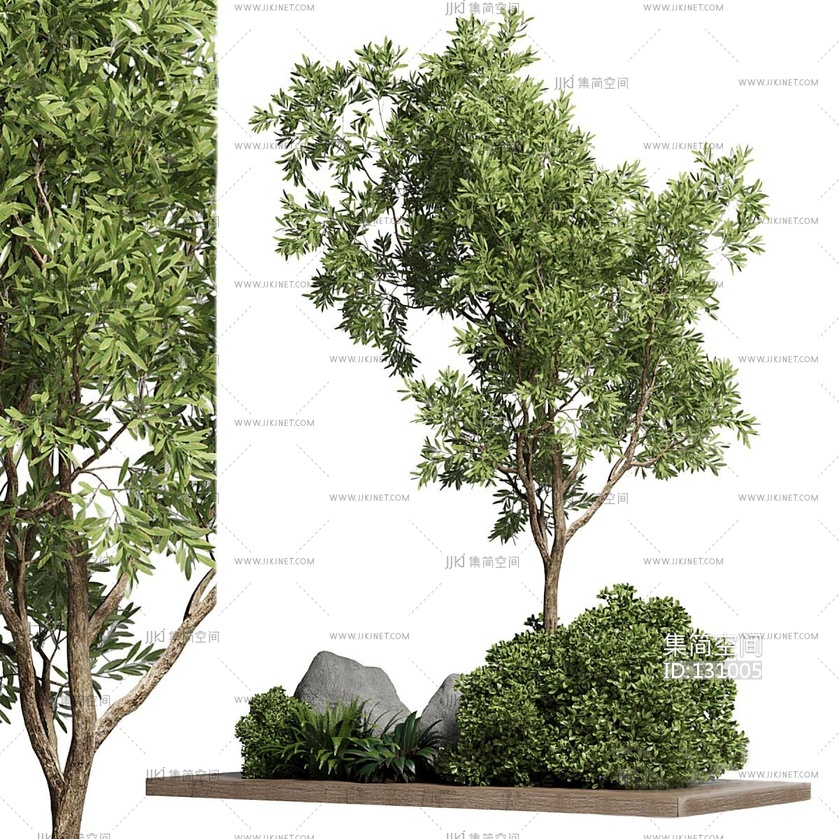 现代景观绿植树,灌木石头景观植物 3d模型下载 [模型ID:131005]