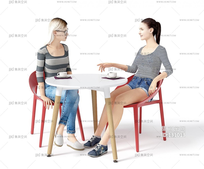 现代圆形休闲桌椅坐着的人物3d模型 3d模型下载 [模型ID:131013]