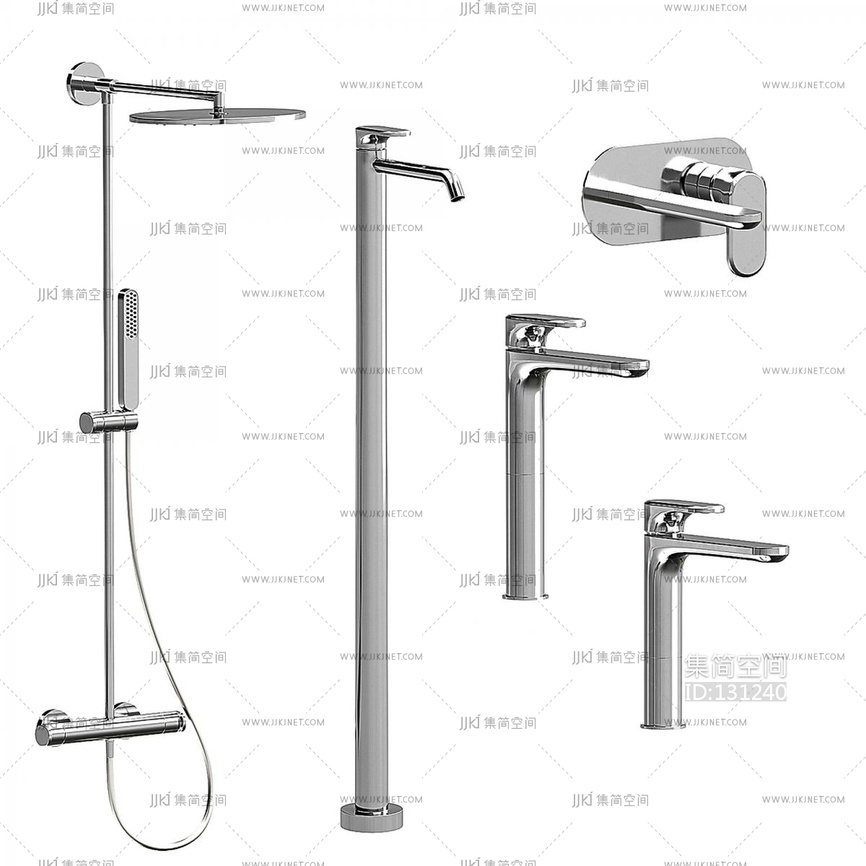 现代不锈钢花洒水龙头 3d模型下载 [模型ID:131240]