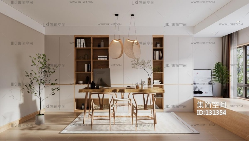 北欧现代书房 3d模型下载 [模型ID:131354]