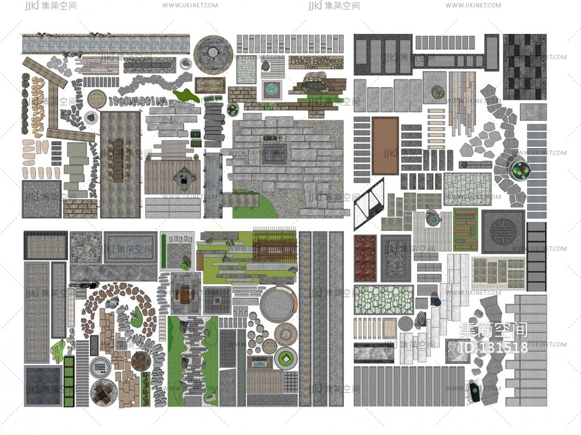民俗庭院铺装小品 su草图模型下载 [模型ID:131518]