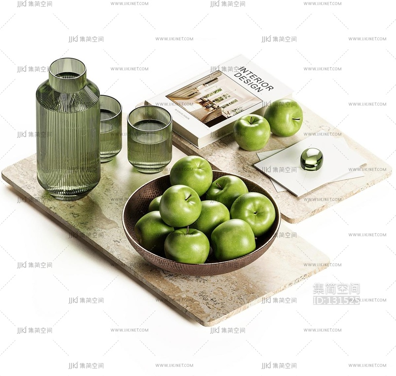 现代茶几摆件果盘瓶果,水杯书籍 3d模型下载 [模型ID:131525]