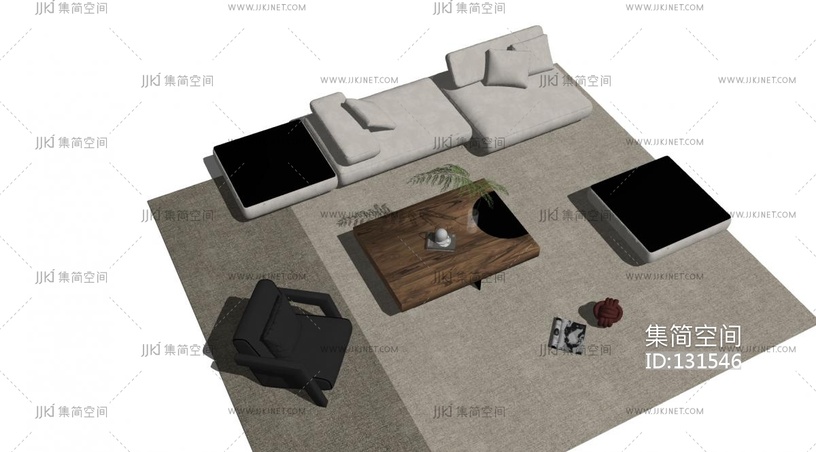 现代沙发组合,原木茶几地毯 su草图模型下载 [模型ID:131546]