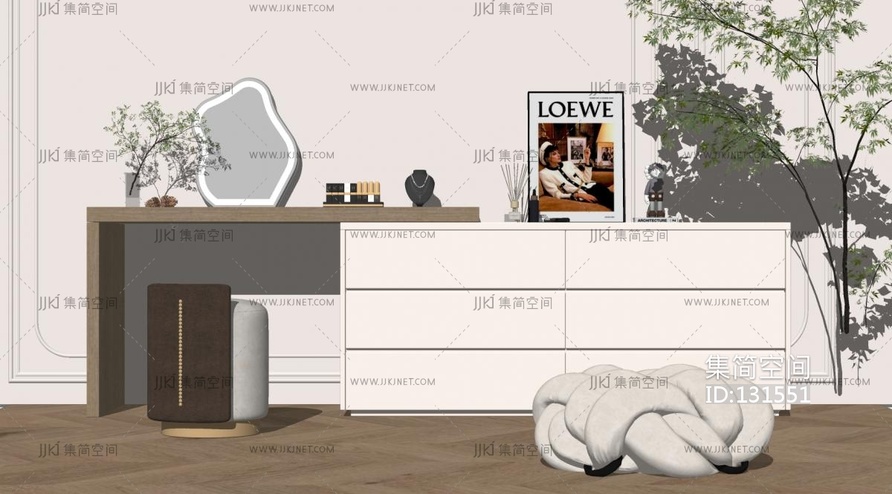 现代梳妆台,化妆镜,异形镜子 su草图模型下载 [模型ID:131551]