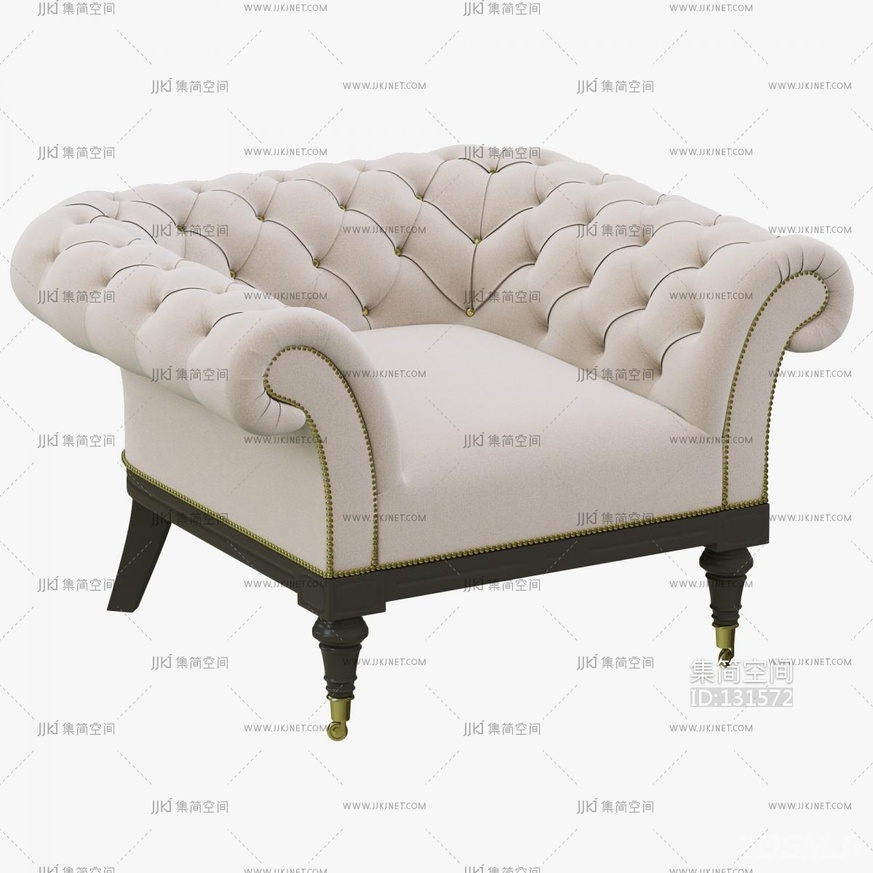 欧式法式皮革单人沙发 3d模型下载 [模型ID:131572]