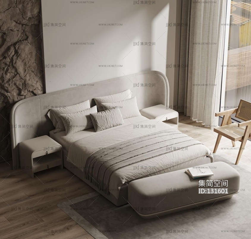 现代卧室双人床,床头柜 3d模型下载 [模型ID:131601]