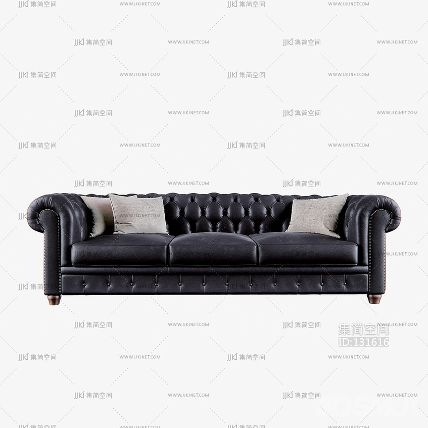 欧式皮革三人沙发 3d模型下载 [模型ID:131616]