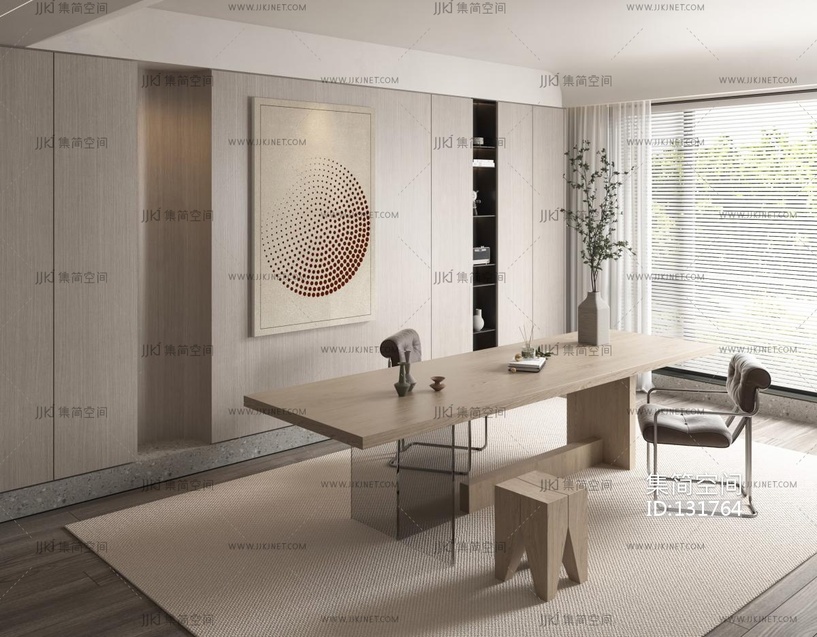 现代书房 书桌椅 壁柜 挂画 吊灯 书 盆栽 摆件3d模型下载