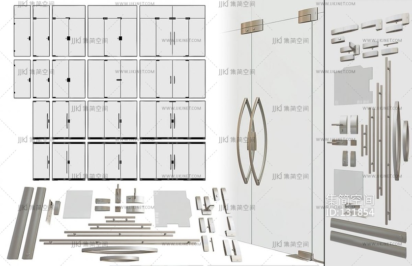现代玻璃门配件,门拉手把手 3d模型下载 [模型ID:131854]