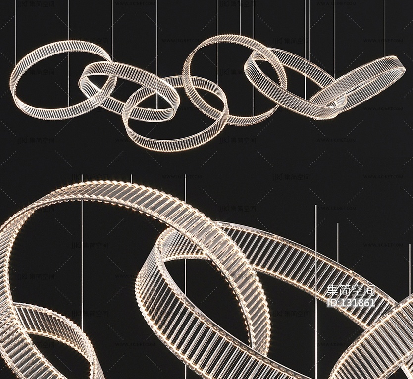 现代玻璃圆环吊灯 3d模型下载 [模型ID:131861]