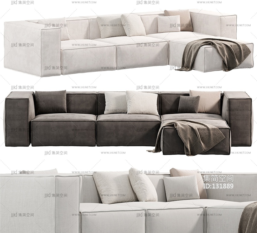 现代沙发三人沙发拼接沙发3D模型3d模型下载