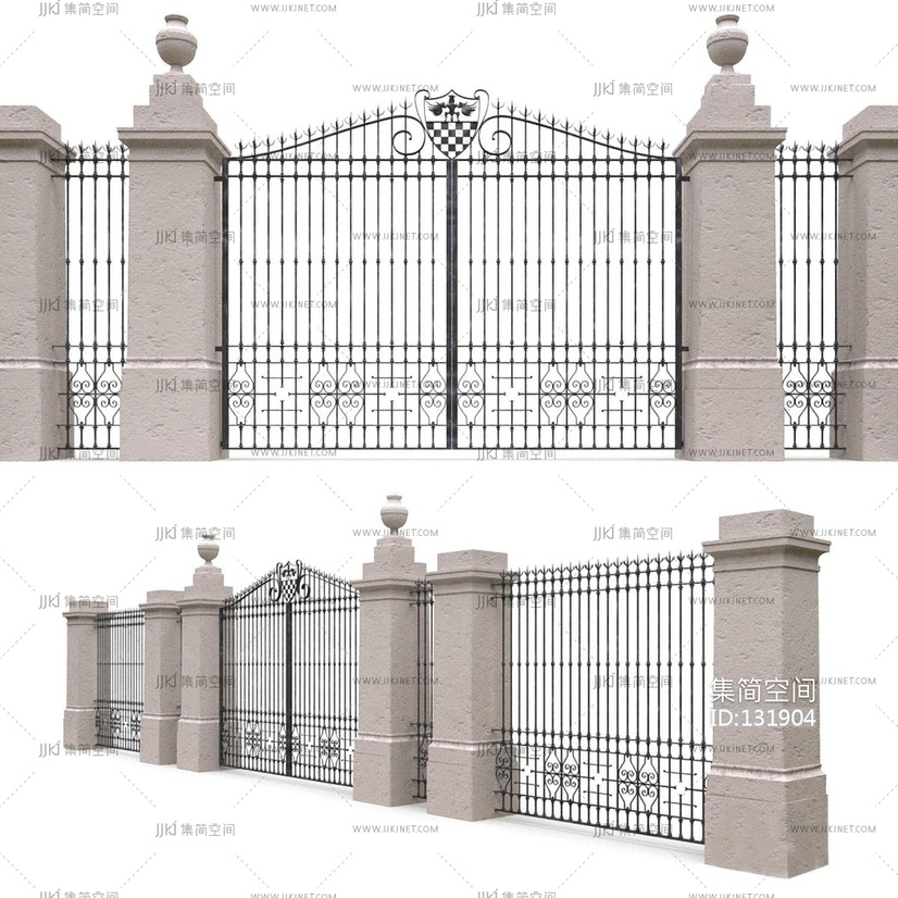欧式铁艺大门围墙院墙 3d模型下载 [模型ID:131904]
