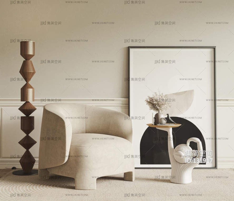 侘寂风休闲单人沙发边几 3d模型下载 [模型ID:131917]