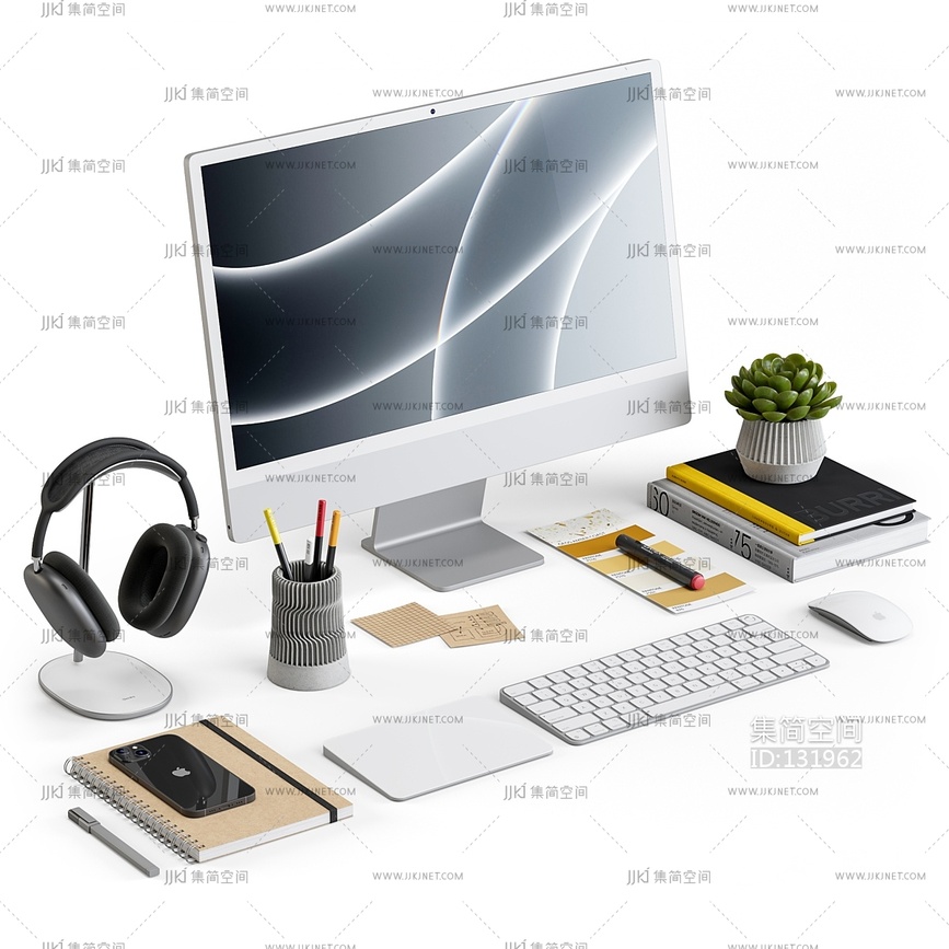 现代苹果电脑一体机,办公用品 3d模型下载 [模型ID:131962]