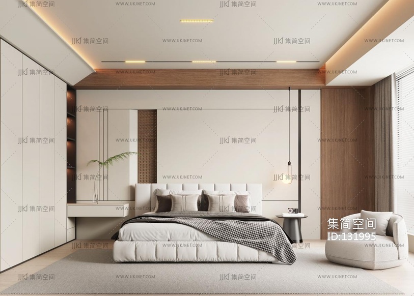 卧室,轻奢,暗黑风,现代轻奢卧室双人床,懒人沙发法式卧室3d模型下载