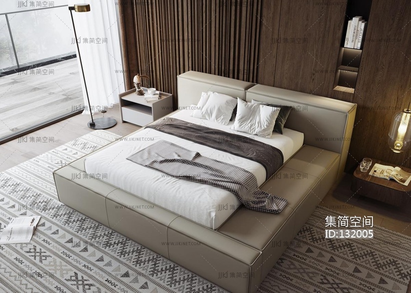 现代双人床床头柜落地灯 3d模型下载 [模型ID:132005]