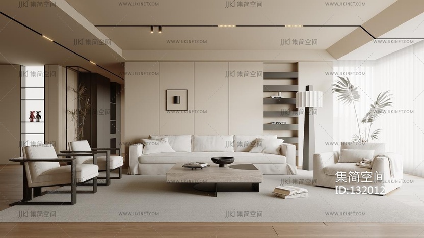 奶油风客厅 3d模型下载 [模型ID:132012]