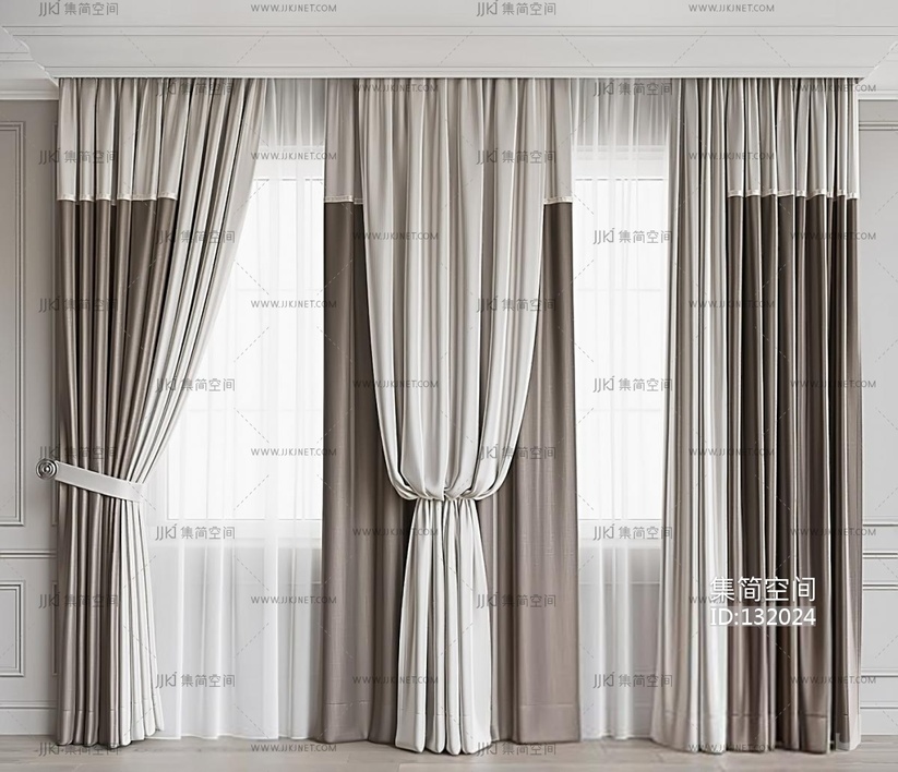 现代通用窗帘_布艺窗帘_纱帘3D模型3d模型下载