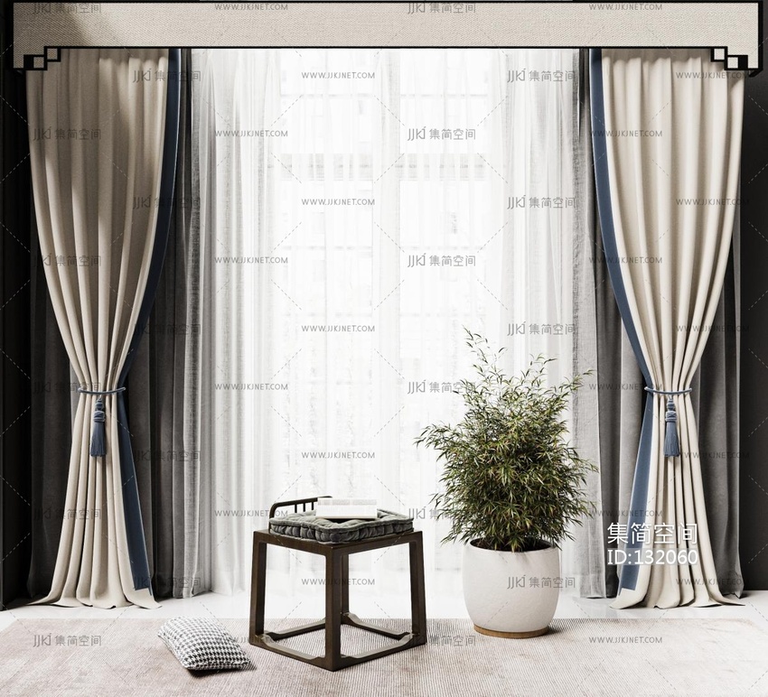 新中式窗帘 3d模型下载 [模型ID:132060]