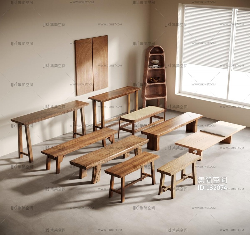 中式长条凳,木板凳 3d模型下载 [模型ID:132074]