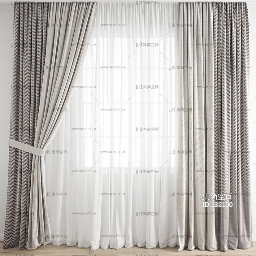 现代窗帘 窗纱 3d模型下载 [模型ID:132100]