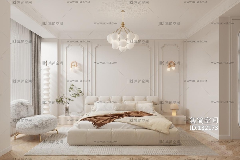 轻法式主卧室 3d模型下载 [模型ID:132173]