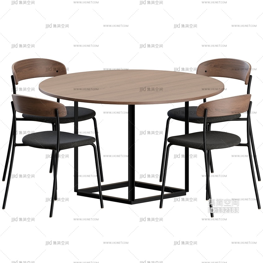 工业风圆形餐桌椅 3d模型下载 [模型ID:132183]