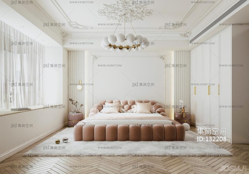 轻法式卧室 3d模型下载 [模型ID:132208]