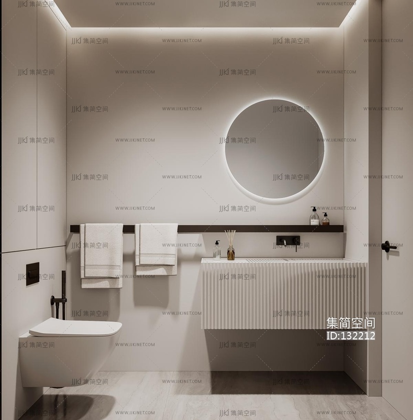 法式奶油风卫生间_洗手盆_马桶抽纸盒花瓶3D模型3d模型下载