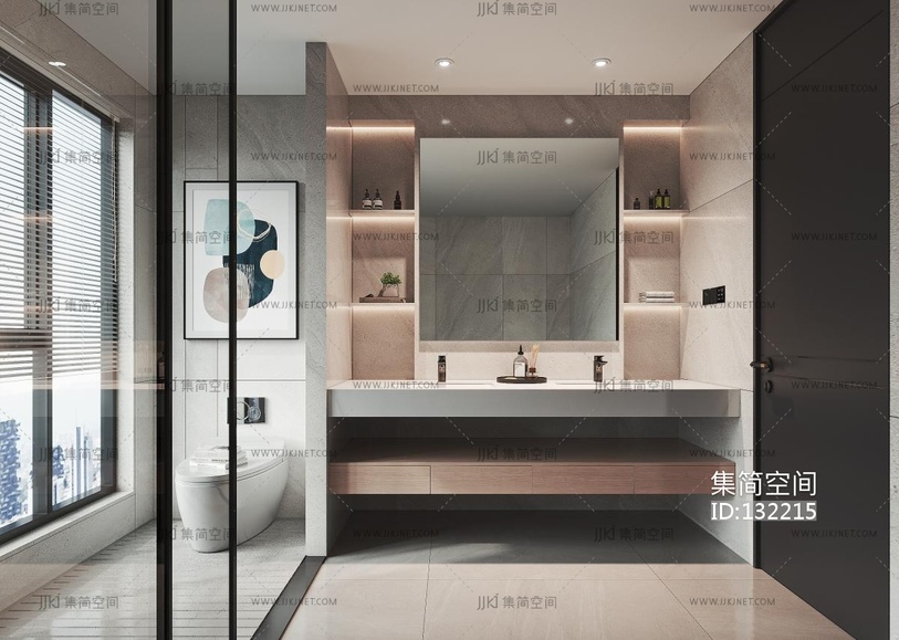 法式奶油风卫生间_洗手盆_马桶抽纸盒花瓶3D模型3d模型下载