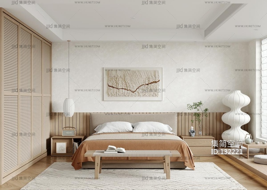 卧室,轻奢,暗黑风,现代轻奢卧室双人床,懒人沙发法式卧室3d模型下载