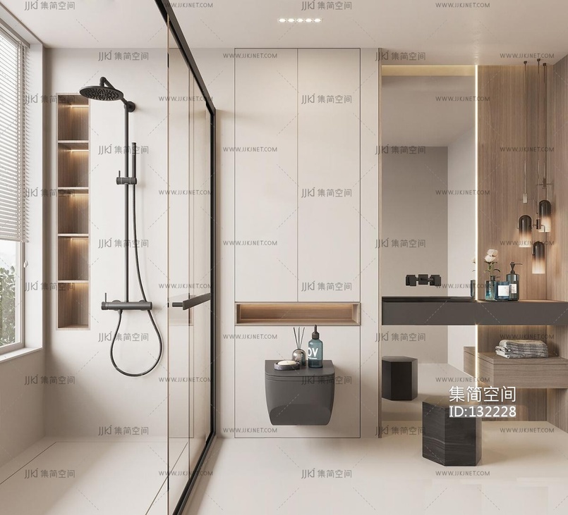 现代浴室卫生间 3d模型下载 [模型ID:132228]