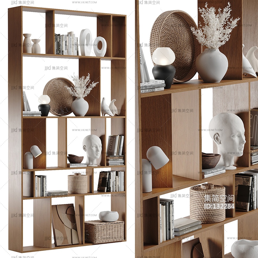 现代书架,书柜,书籍摆件 3d模型下载 [模型ID:132284]