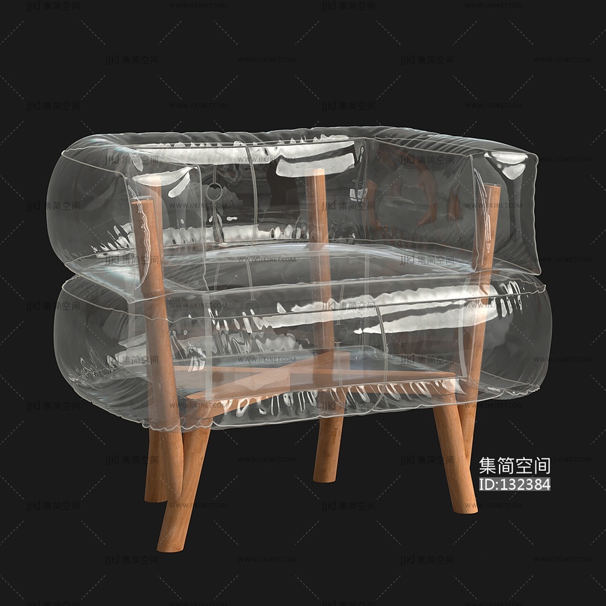现代充气塑料亚克力透明单人沙发 3d模型下载 [模型ID:132384]